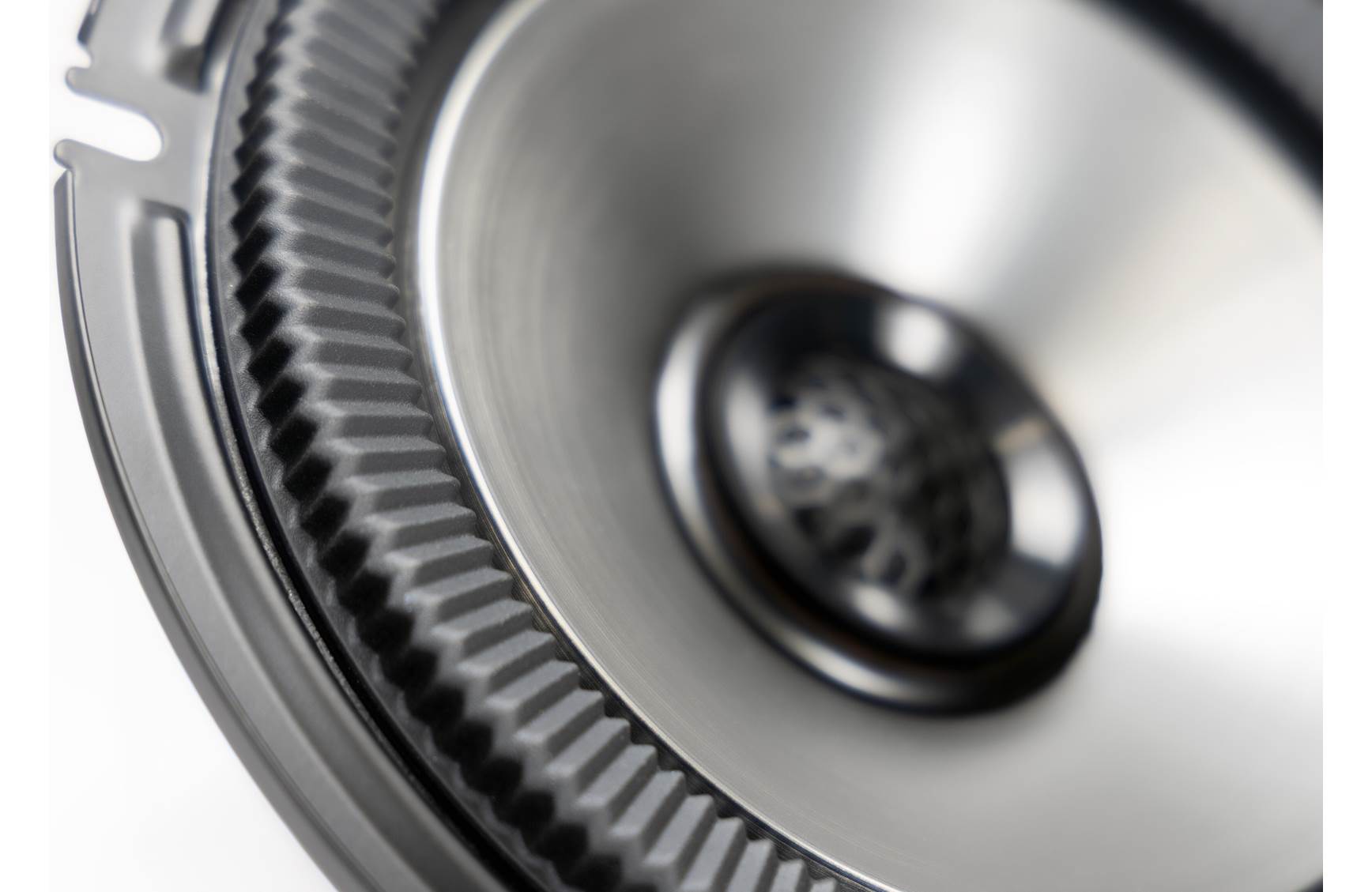 The Alpine BRV-S65 6-1/2" coaxial speakers are an excellent way to add life to your sound. In fact, they're Hi-Res Audio Certified by the Japan Audio Society (JAS). These coaxial speakers combine rigid, high-excursion woofers with 1" tweeters in a combo that Alpine has designed and tested to maximize the Optim DSP output from select Alpine amplifiers. The woofer features Alpine's new H.E.D.G.E. multi-roll surround with a corrugated design, so stress is spread across the ribs you see in the image below. The ribs act like an expansion joint so the cone travels without stretching the surround too much. This design is usually found on high-excursion subwoofers, where a speaker needs long travel and great control.