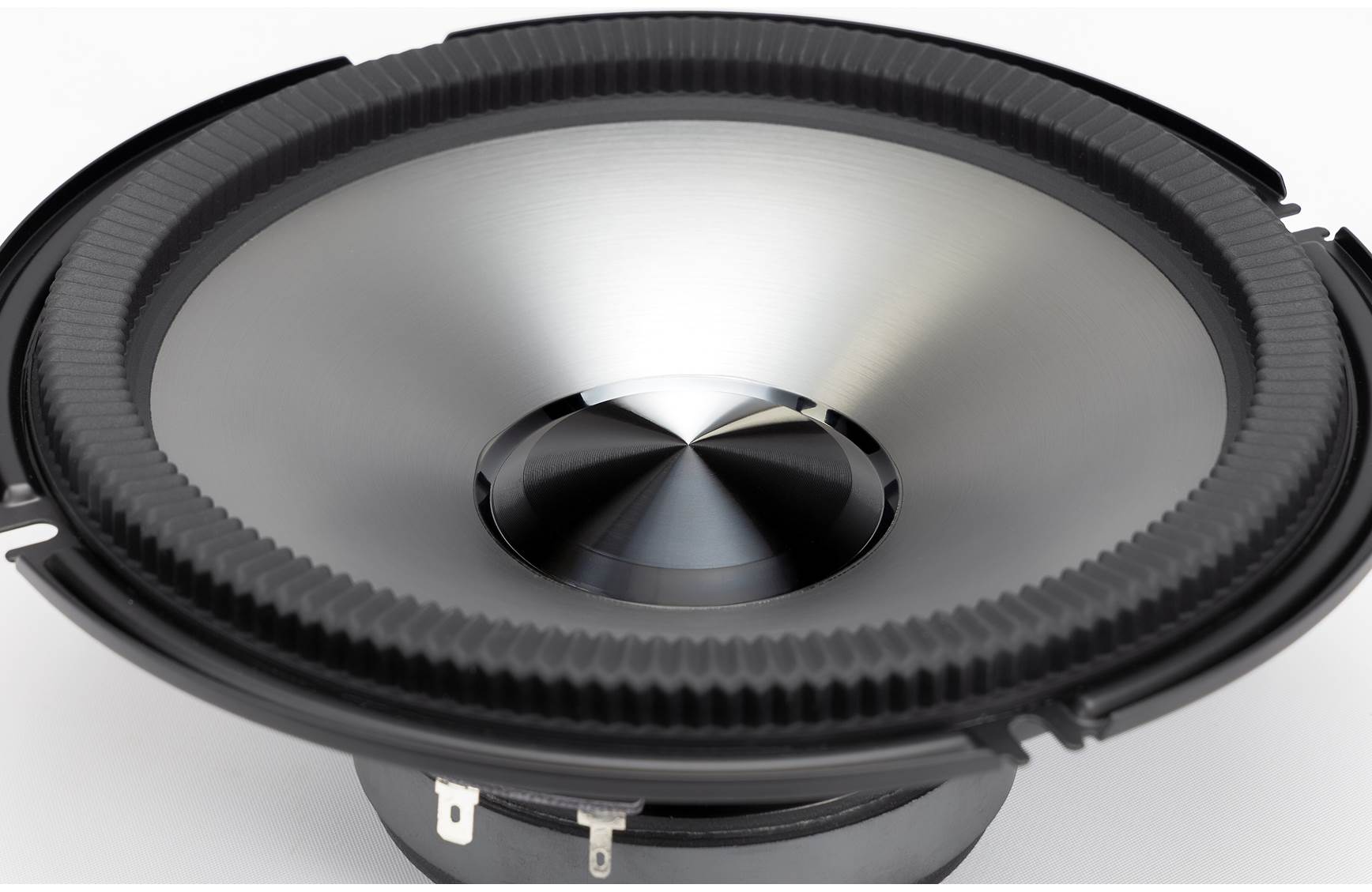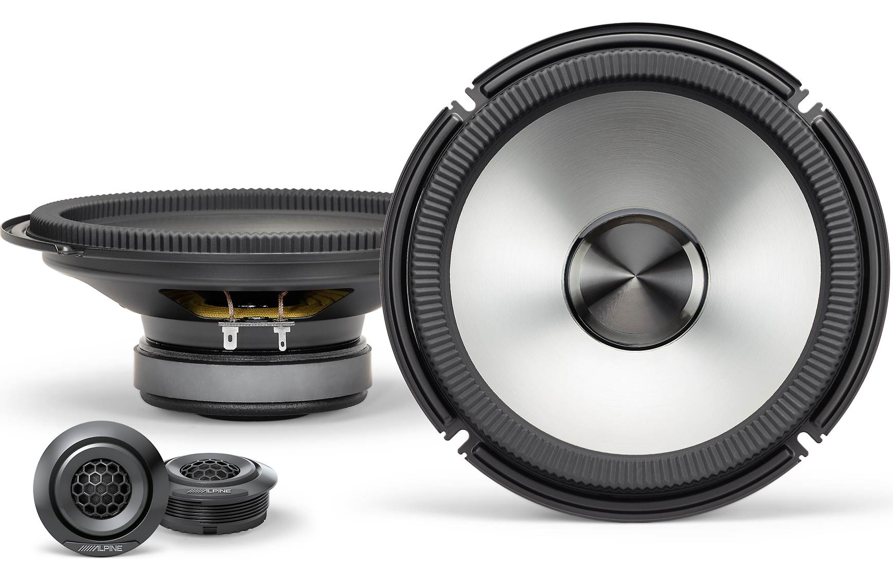 The Alpine BRV-S8C 8" component speakers are an excellent way to add life to your sound. In fact, they're Hi-Res Audio Certified by the Japan Audio Society (JAS). These component speakers include a pair of mid-bass woofers and a pair of 3/4" tweeters that Alpine has designed and tested to maximize the Optim DSP output from select Alpine amplifiers. The 8" mid-bass driver has a HEDGE (High Excursion Design Gathered Edge) surround, a new design from Alpine for a multi-roll surround with a corrugated design, so the stress is spread across the ribs you see in the image below, acting like an expansion joint that lets the cone travel without stretching the surround too much. This design is usually found on high-excursion subwoofers, where a speaker needs long travel and great control.