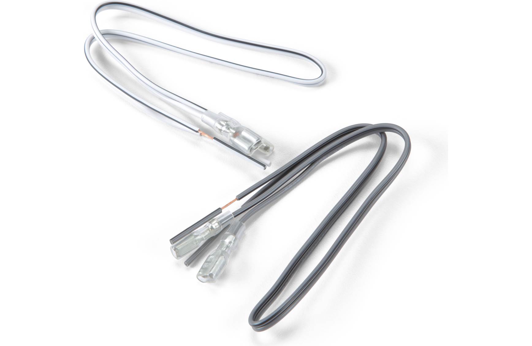- Two 12" Lengths of speaker wire (each has quick-slides on one end and bare wire on the other)