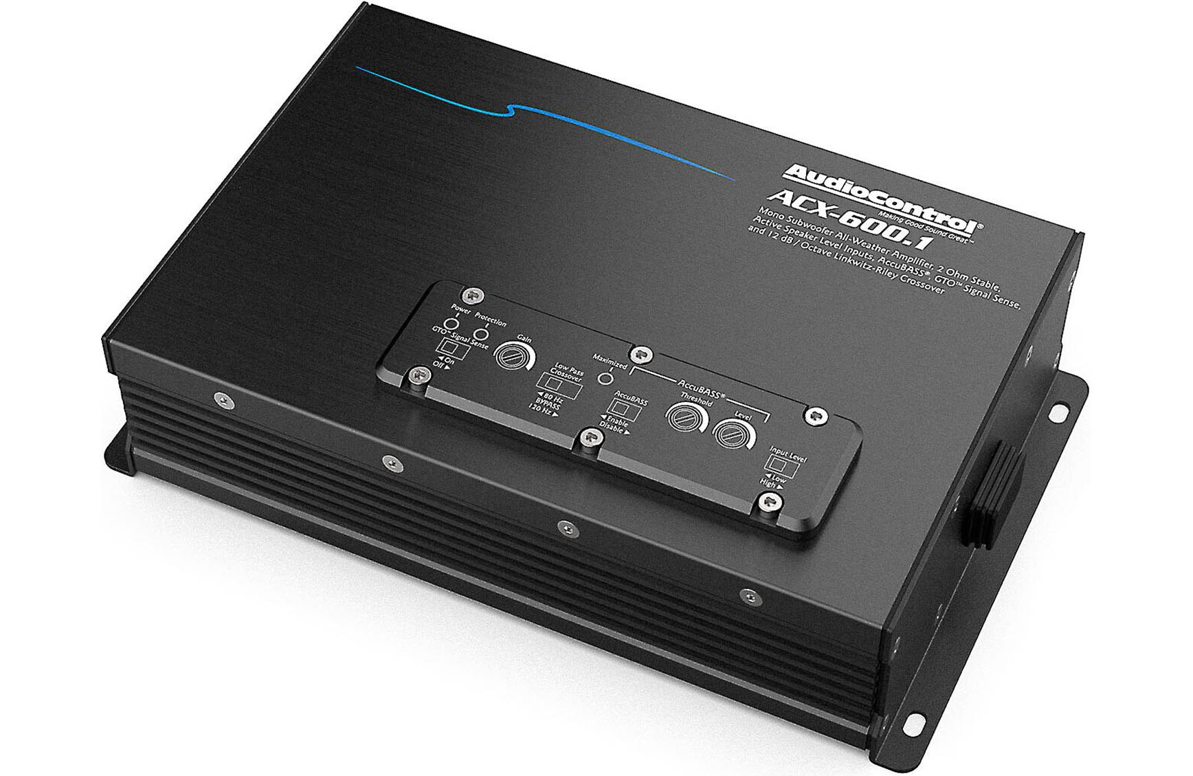 The ACX-600.1 can send up to 600 watts RMS to your sub — plenty enough to feel the bass pound clearly over the sounds of wind and motor. AudioControl's AccuBASS® processing plus low-pass and subsonic filters help you achieve the best bass tone possible for your subwoofer. This compact amp will fit almost anywhere in almost any kind of vehicle, and it features high-level inputs with signal-sensing turn-on, so it'll work with almost any stereo system.
