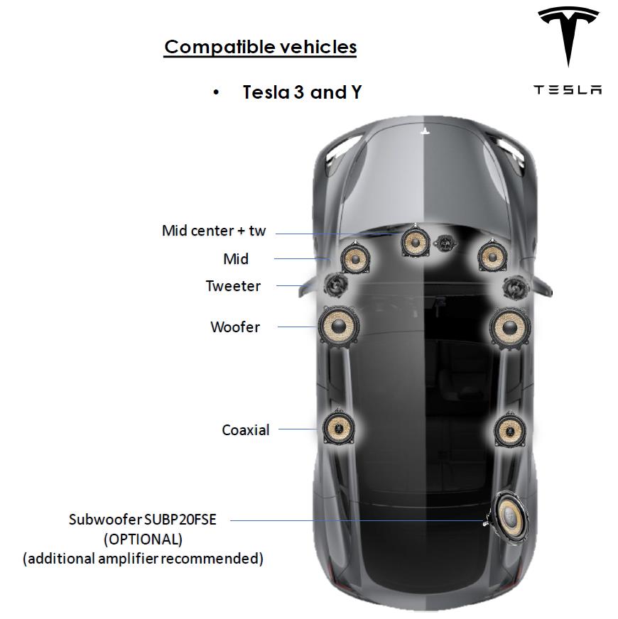 FOCAL+MOSCONI Tesla Model 3/Y complete speaker+amp kit (aka STAGE 2) includes the following FOCAL and MOSCONI part #s: