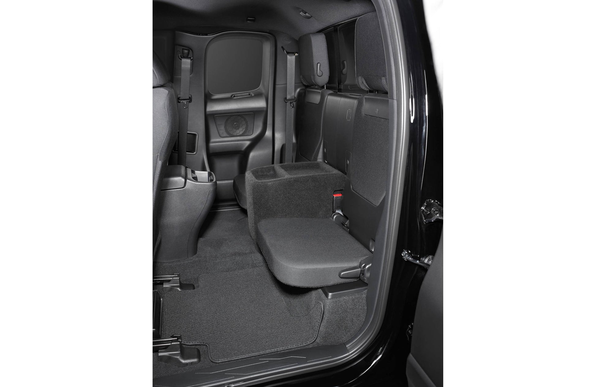 This dark grey Stealthbox® enclosure replaces the rear centre console in 2016-up Toyota Tacoma Access Cab trucks, and is an excellent match for the graphite or black interior. This Stealthbox® includes one 10TW3-D4 10" subwoofer from JL Audio, wired for 2-ohm impedance and handling up to 400 watts RMS. Please check with us before purchasing by using the vehicle selector on our site, or calling a Sales Advisor at 1-888-955-6000 to verify fit information.